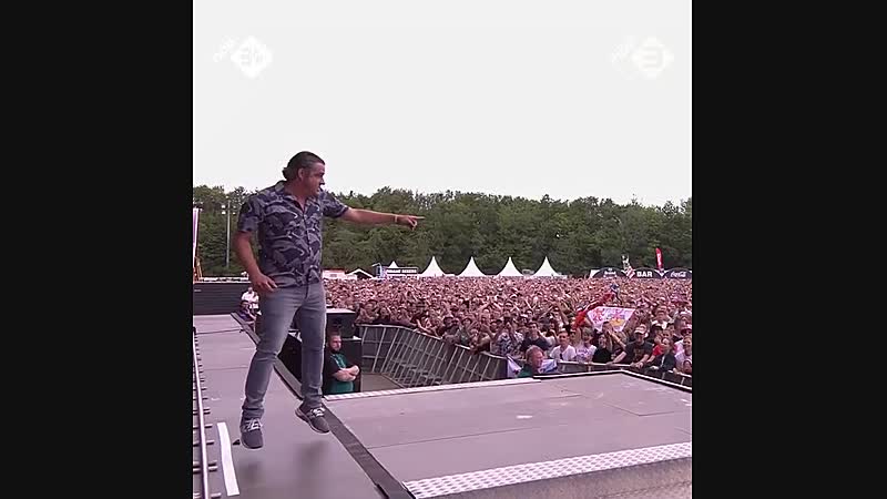 Het publiek doet niet echt lekker mee met de stagedive van Frank "Ferry" Lammers op Pinkpop