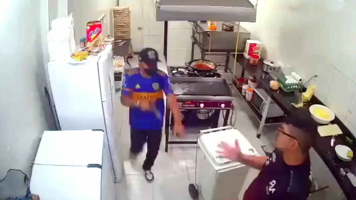 Even sneaky via het achterdeurtje bij een restaurant in Brazilië binnenkomen om met een wapen in de aanslag even snel wat snelle flappen te pakken. Nou, daar dachten ze in de keuken toch echt iets anders over. BAM, deegroller op je bakkes!