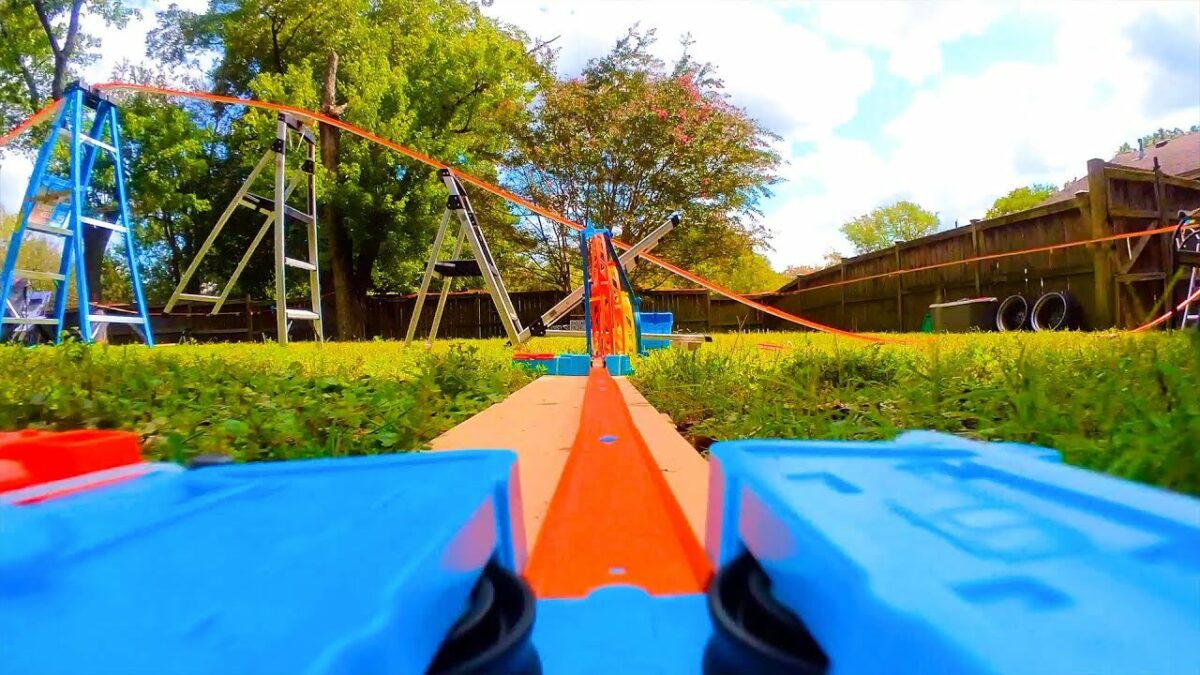 Doe eens gek, bouw eens een belachelijk grote Hot Wheels-baan in je achtertuin