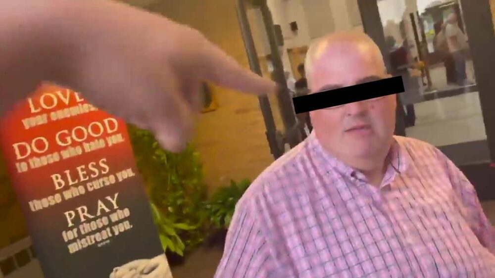 De overige kerkbezoekers nemen de man gauw weer mee naar binnen en in bescherming, iets dat tegen het zere been van het slachtoffer is.