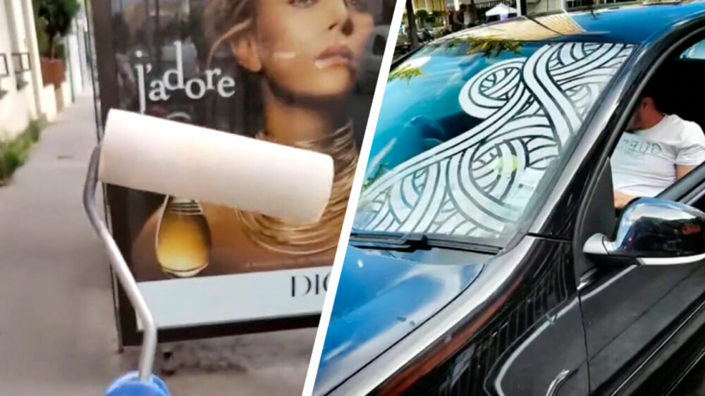 Waarom zou je alles met bussen verf onderspuiten als je ook gewoon met je rollertje en je spray op stap kunt gaan om wat sierlijke lijntjes te trekken?