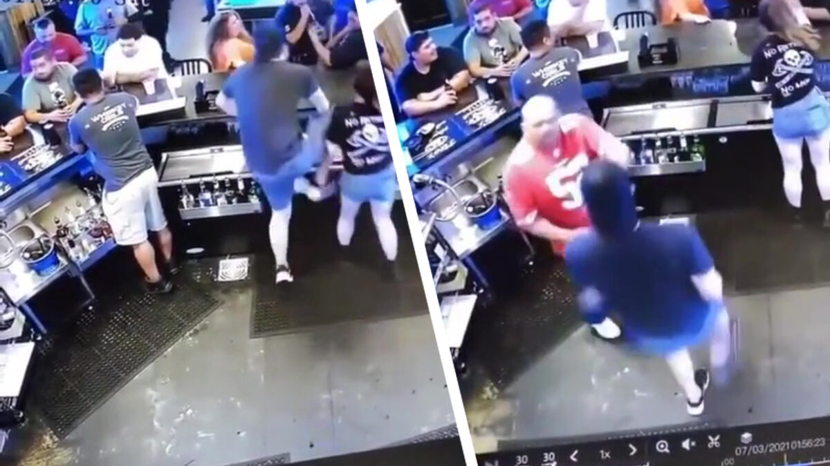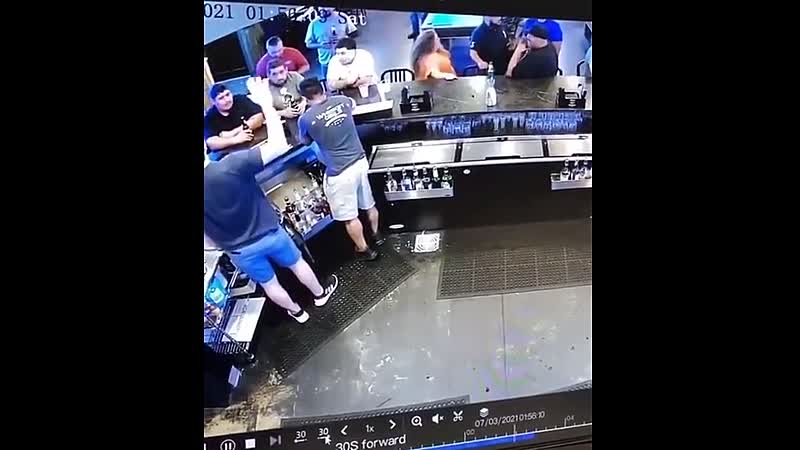 Achter de bar kom je alleen als je daar werkt. Punt. Breek je die regel dan loop je de kans deze knakker tegen het lijf te lopen en dat betekent zeer waarschijnlijk een vroegtijdig einde aan je avondje stappen.