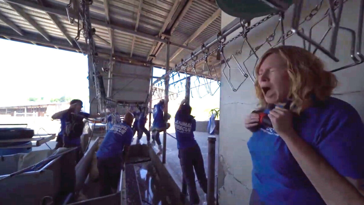 Dierenactivisten hangen zichzelf bijna op tijdens de bezetting van een slachthuis