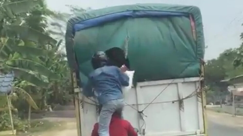 Motorrijders weten met gevaar voor eigen leven uit vrachtwagen te stelen