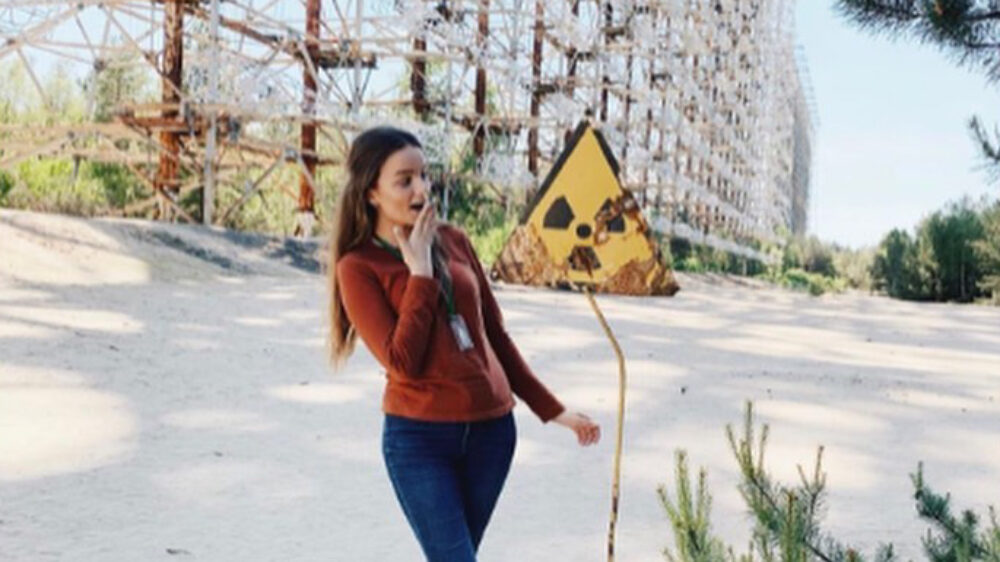 Natuurlijk wil je als "influencer" (raar hè, dat sommige woorden ter plekke rode vlekken op je zak veroorzaken) wel een beetje met je tijd meegaan, dus als de serie Chernobyl superhot is moet je als een dolle naar Pripyat voor een fotosessie. Dat dat niet de allerlekkerste plek op aarde is doet er niet toe, alles voor de views.