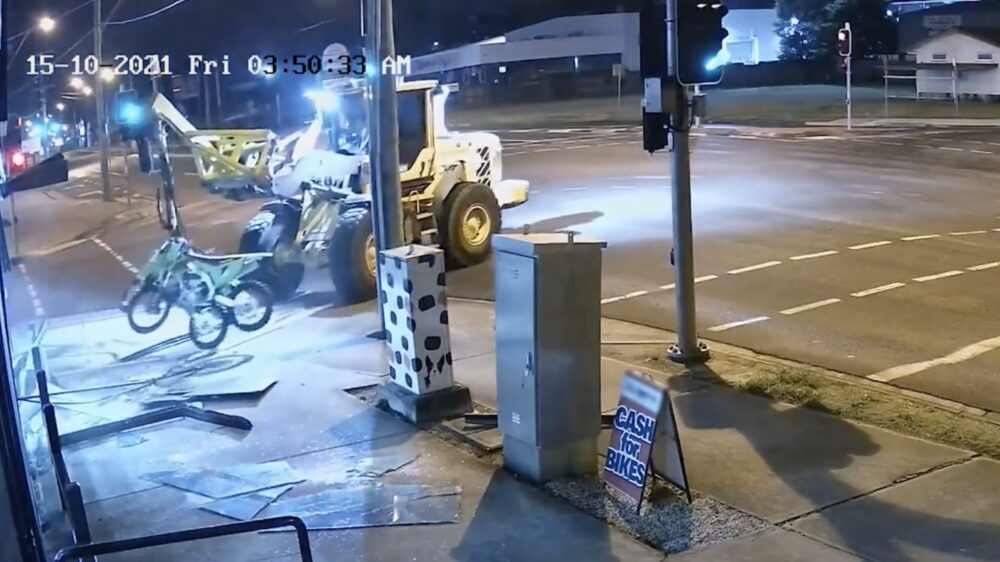 Het lijkt misschien wel op een scène uit GTA, maar dit gebeurde onlangs in Queensland (Australië) toen een 41-jarige man blijkbaar geen zin had om voor twee motoren te betalen. Bob de Bouwer besloot zijn shovel door de etalage van een winkel te rammen om naar wat motorfietsen te vissen. Uiteindelijk wist 'ie niet aan ome agent te ontsnappen en kon hij een tijdje brommen (gheh).