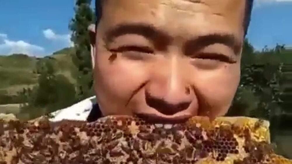 Niets lekkerder dan een grote hap extreem verse honing Bizar