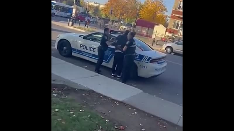 Twee vrouwelijke agenten proberen een man te arresteren in Montreal