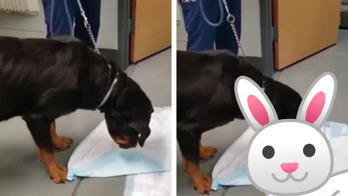 Al eens een hond een compleet konijn in één keer zien ophoesten?