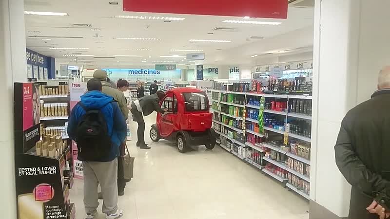 Brommobiel neemt verkeerde afslag en komt in winkel terecht Fails