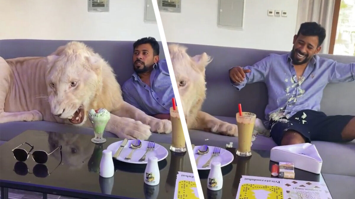 Een tijdje terug zagen we Arabische sjeik Humaid Albuqiash ook al op zijn bank chillen met zijn BFF, maar vandaag doen ze dat nog eens dunnetjes over. Durf eens een slokje van mijn milkshake te pakken!