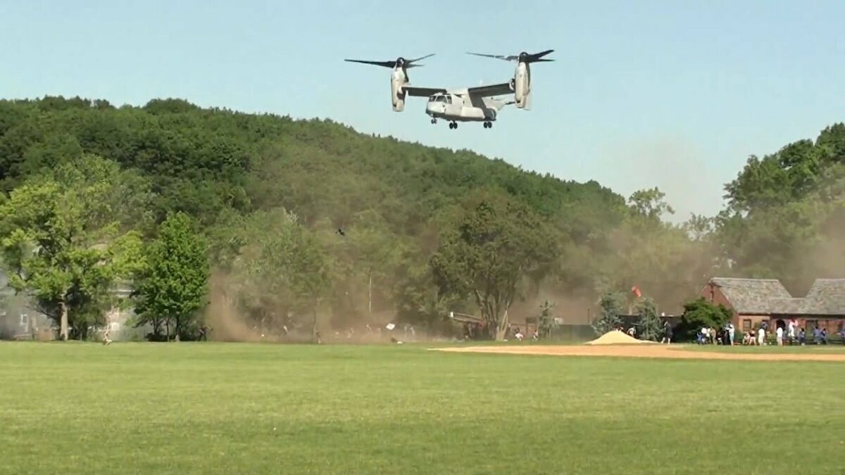 Uit de oude doos: een V-22 Osprey helikopter zorgt voor een ravage in het park