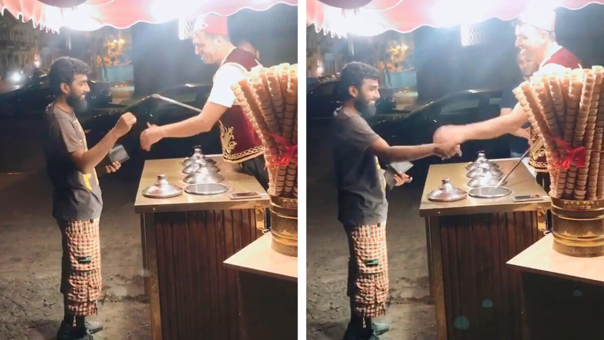 Heerlijk: Turkse ijscoman een koekje van eigen deeg geven