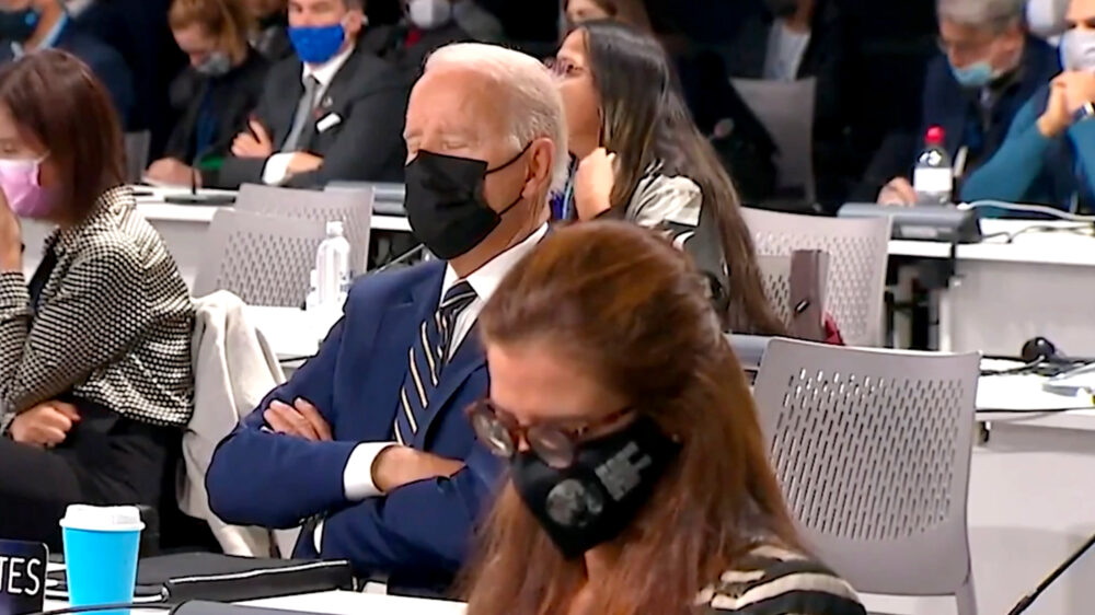 'Sleepy Joe' sukkelt weg tijdens de Global Climate Conference in Schotland