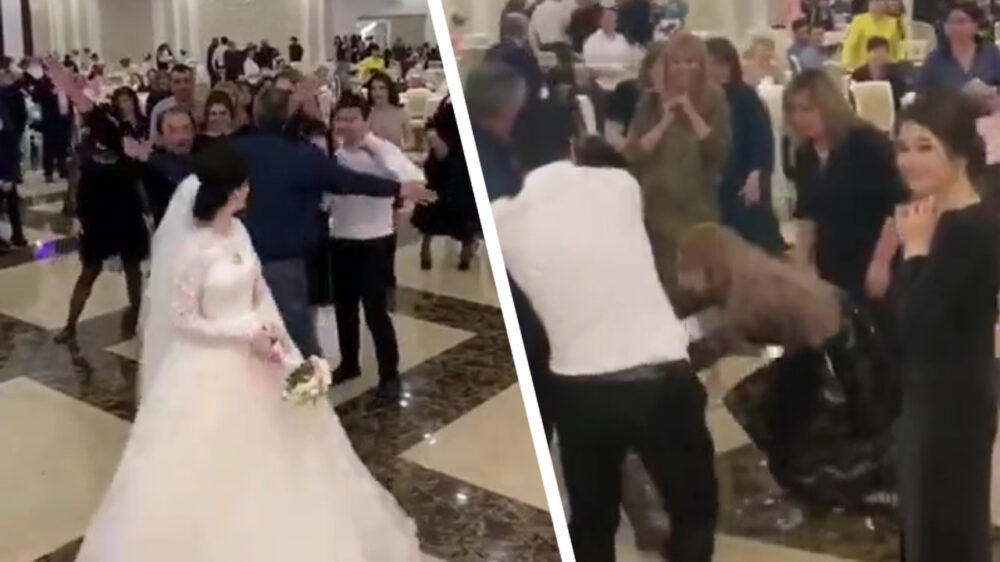 Uit de oude doos: dikke familierellen tijdens het gooien van het bruidsboeket