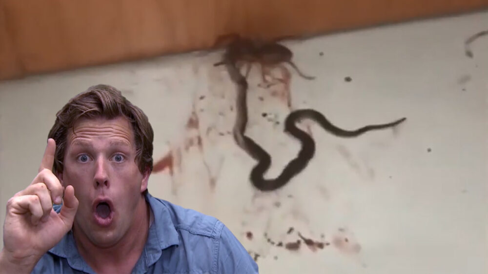 Holy moly: rolspin laat een bloedbad achter als hij een slang opeet