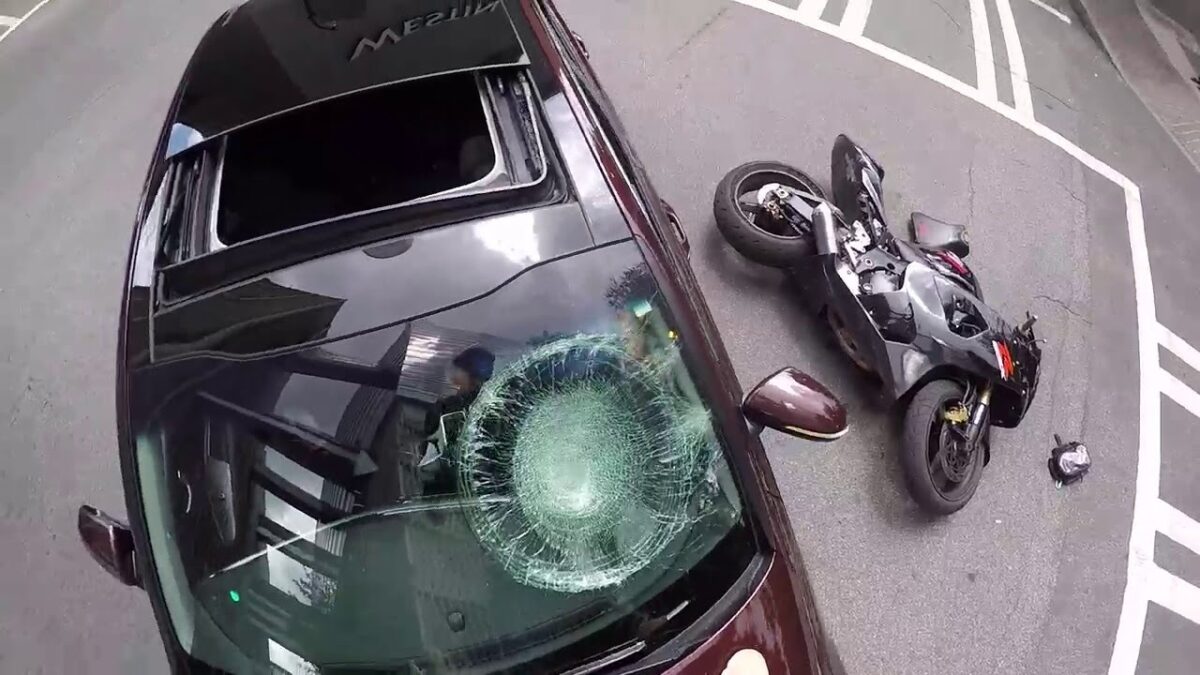 Motorrijder trapt uit frustratie dwars door voorruit van auto na knullig ongeluk Verkeer