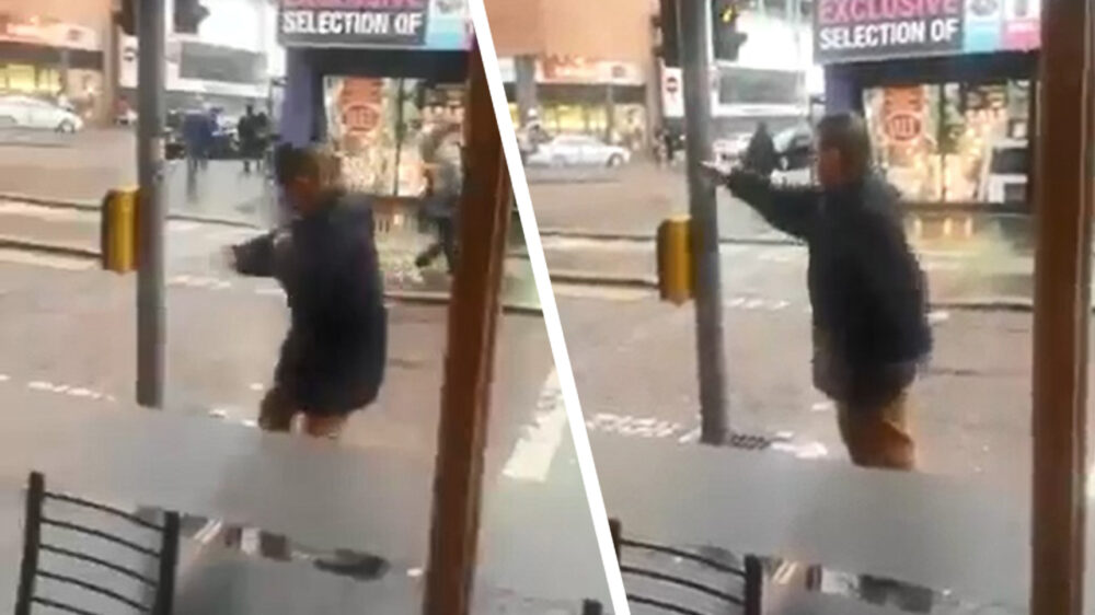 Dronken Ierse strijder heeft ruzie gekregen met een bijdehante lantaarnpaal