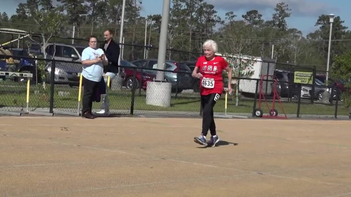De 105-jarige Julia 'Hurricane' Hawkins zet een record op de 100 meter, wat is jouw excuus?