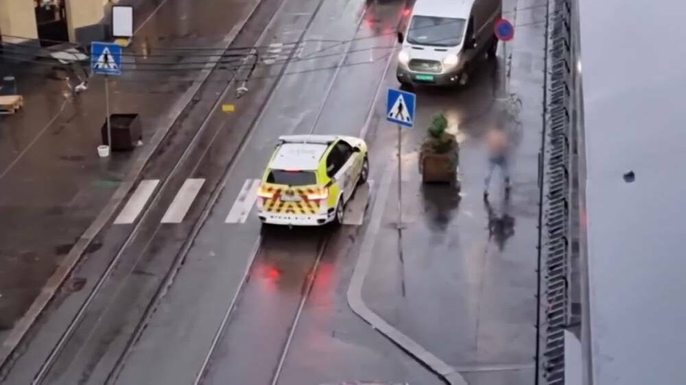 In Oslo liep vanochtend een man met een behoorlijk slagersmes rond die zich dreigend tegenover voorbijgangers gedroeg. Op een video is te zien hoe een politieauto de man onder controle probeert te krijgen door hem tegen een muur te duwen. De man ontsnapt, opent het portier van de auto en steekt een van de agenten neer met het mes waarna ze het vuur openen.