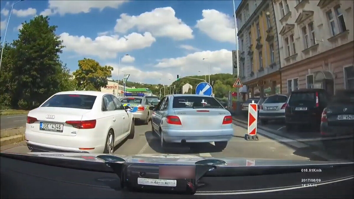 Gelukkig stapt het gezinnetje zonder al te erge verwondingen uit de auto. De dronken idioot heeft zo te zien ietwat meer dan een schrammetje.