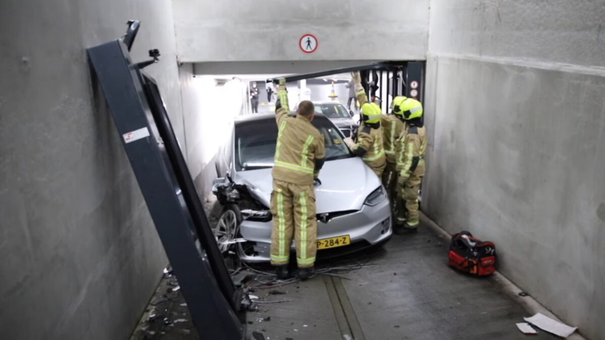 Tesla begint "uit zichzelf te rijden" en sloopt uitrit van parkeergarage in Den Haag