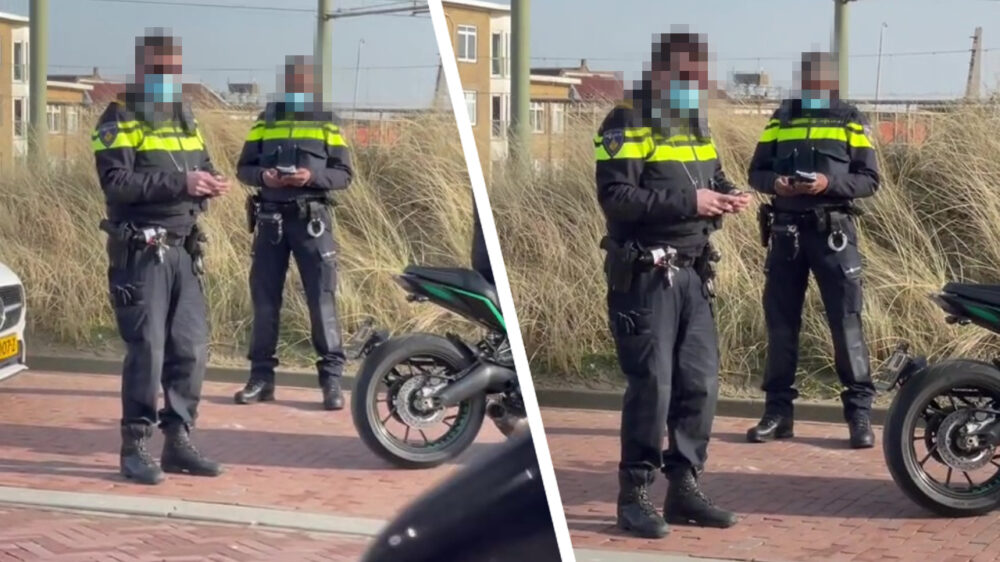 Tsjah, als je ziet dat er een motorrijder wordt aangehouden kun je natuurlijk even zwaaien; je kunt óók even een toepasselijk muziekje opzetten.