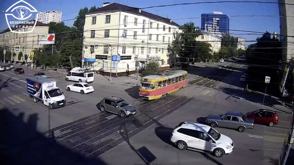 De tramrails in Rusland zijn niet per se de beste plek om te 'parkeren' Verkeer