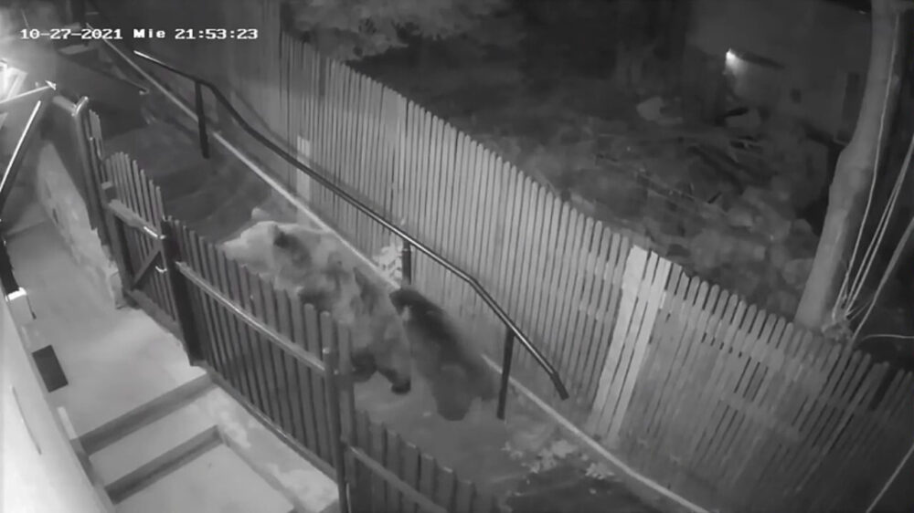 In Nederland is het nog wel eens een egeltje of verdwaalde huiskat die wat te eten komt scoren. In Roemenië wordt er door heel andere dieren geschooierd, en da's toch effe schrikken!
