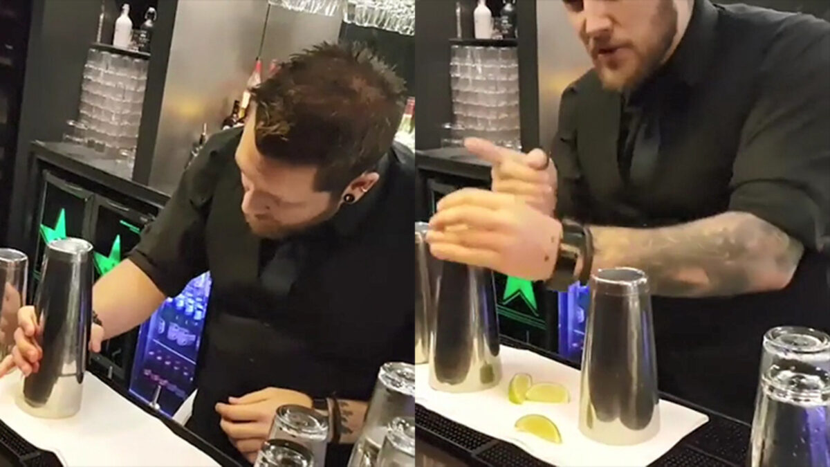 Barman probeert de vrouwtjes te plezieren met een goocheltrucje