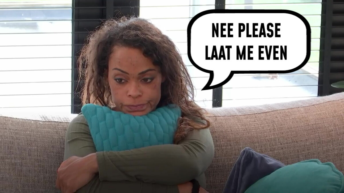 Ah, daar is Elise weer! De deelneemster in Lang Leve de Liefde die of chronisch ongesteld, of gewoon standaard chagrijnig is. Keuze laten we even aan jullie, maar haar date Pieter zit er maar mooi mee opgescheept. Hij doet zijn dappere best, maar blijkbaar is enige vorm van medewerking of interesse tonen te lastig voor deze dame. We gokken dat deze uitzendingen haar toekomstige liefdesleven weinig goed doen... Met je "Nee please, laat me even".
