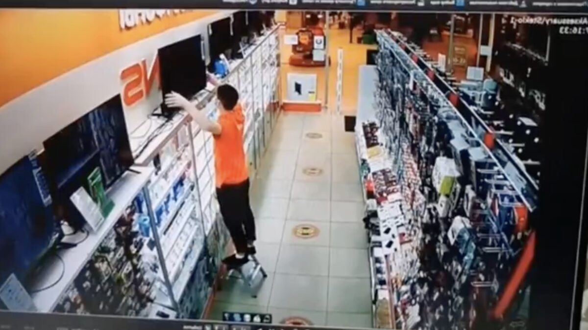 Deze winkelmedewerker dacht waarschijnlijk dat hij aan Domino Day meedeed