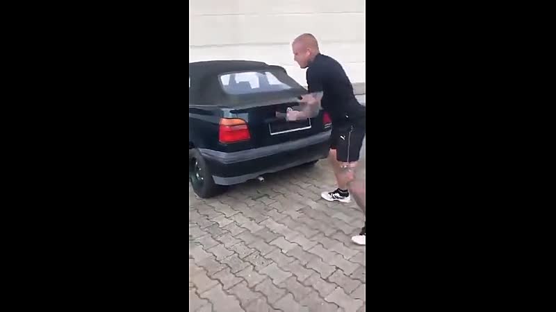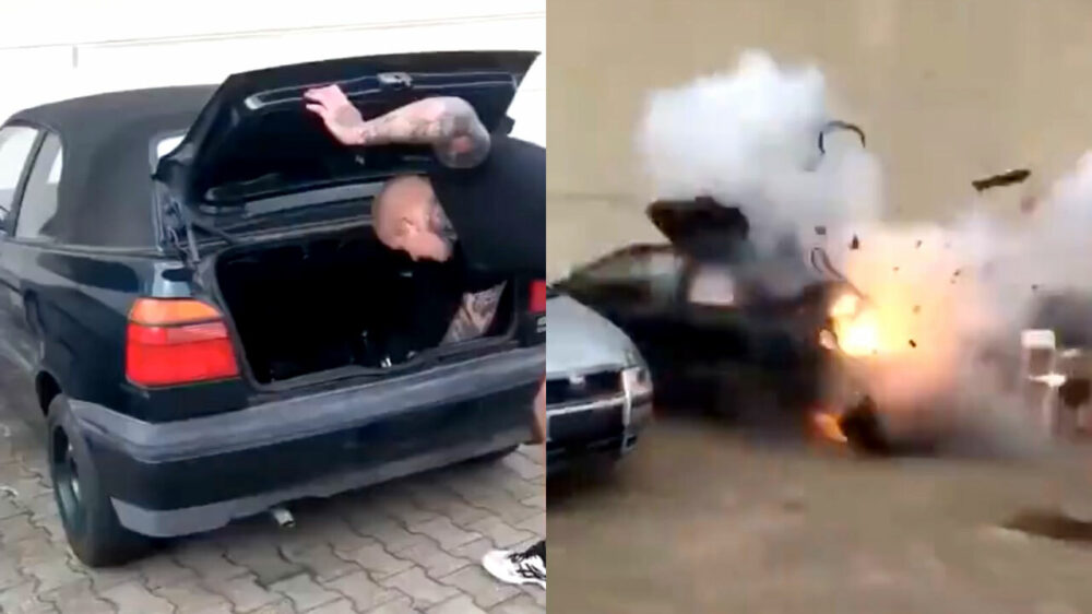 Uit de oude doos: Duitser test zijn nieuwe vuurwerk op zijn cabrio