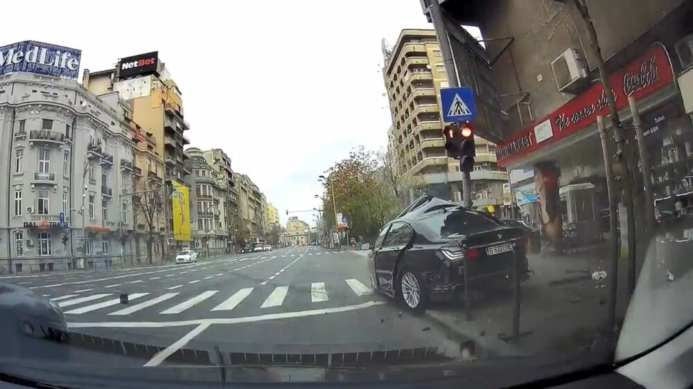 Een dronken malloot verliest de macht over het stuur als hij op Victoriei Square in Boekarest probeert te #vluchten voor de politie nadat ze hem aan de kant wilden zetten. De bestuurder bleek dronken en hij had flink wat witte poeder in zijn neus geduwd, maar wonderbaarlijk genoeg overleefde hij de crash wel. Toch nog een happy end!