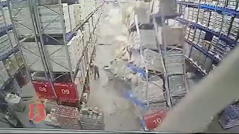 Medewerker Russisch drankmagazijn ontsnapt aan de dood als stellingen in elkaar storten
