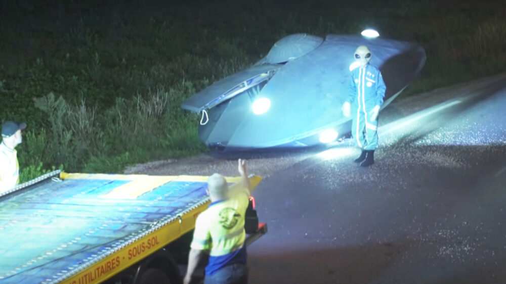Altijd vervelend als je in de file staat voor een gecrashte UFO