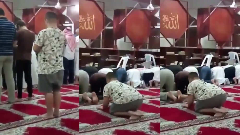 Lijkt ons ook geen pretje, -tig keer op een dag moeten bidden. Zeker niet met deze temperaturen. Echter weet deze knakker met down zich prima te vermaken.