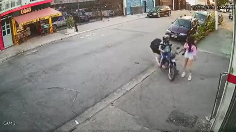 In Brazilië zijn er gelukkig nog omstanders die te hulp schieten als een jongedame door een laffe crimineel van haar tas wordt beroofd.