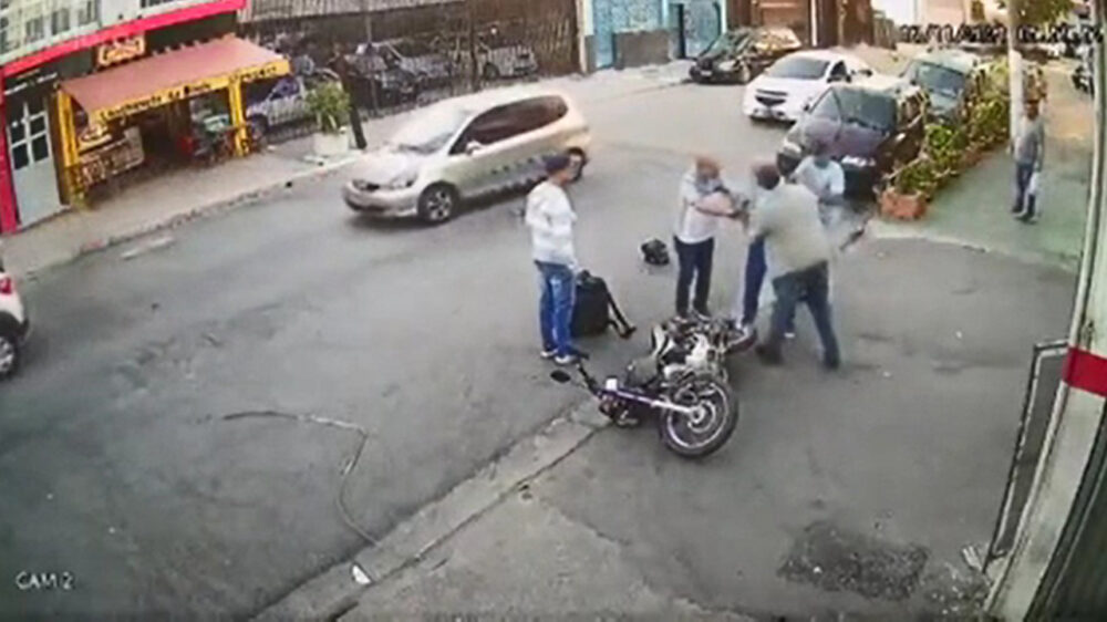 In Brazilië zijn er gelukkig nog omstanders die te hulp schieten als een jongedame door een laffe crimineel van haar tas wordt beroofd.