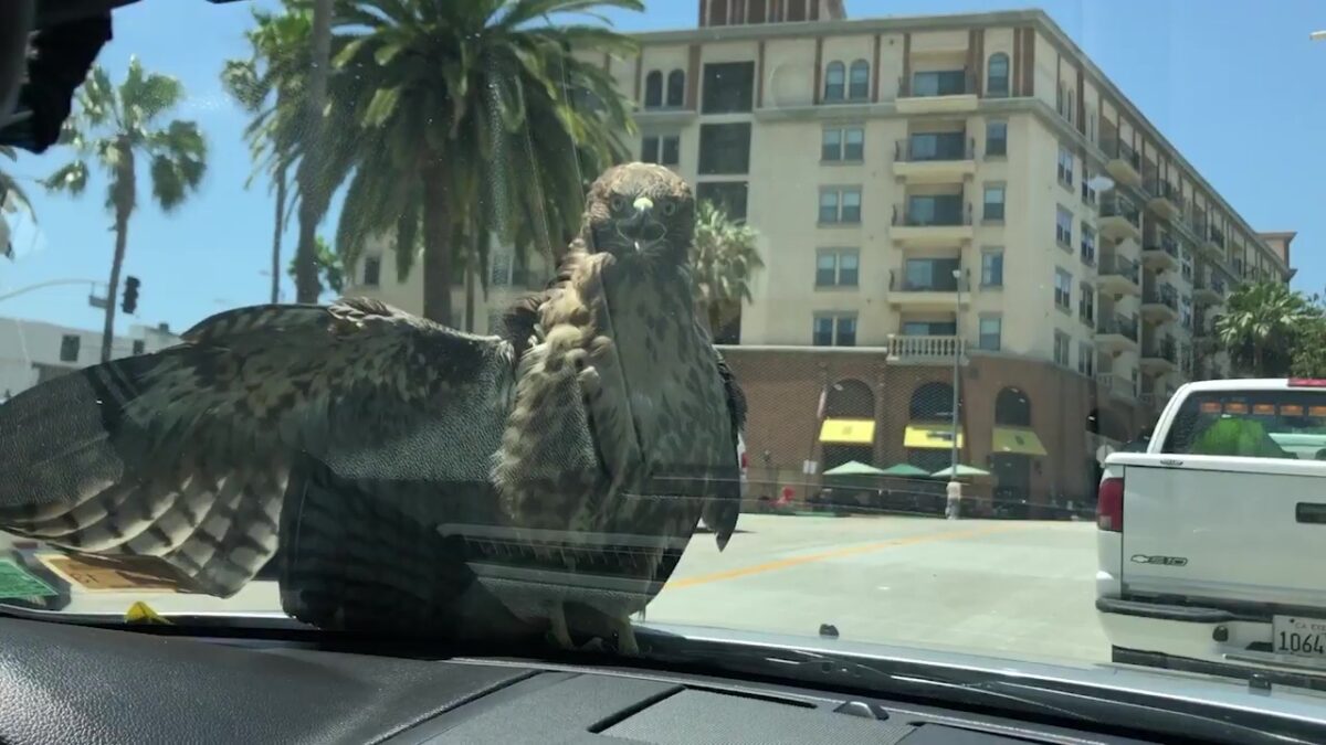 Luie havik heeft geen zin om te vliegen en besluit te gaan liften