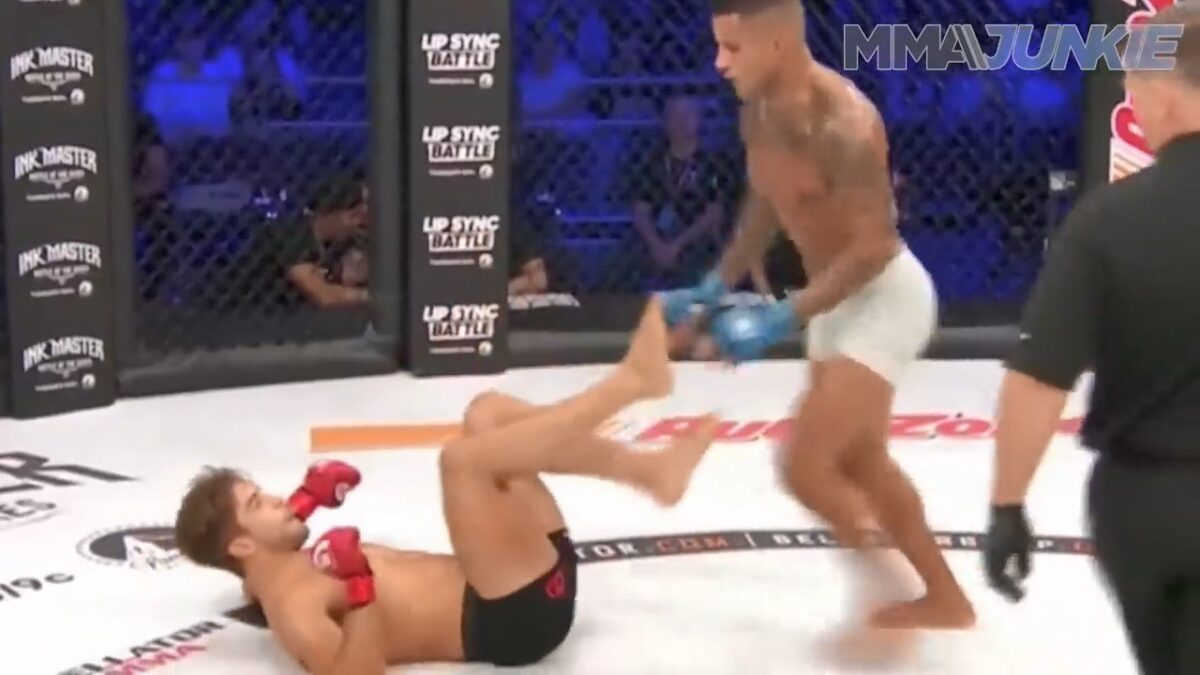 Gelukkig kan Alfie Davis er na de wedstrijd wel om lachen. De laffe trap van Jorge Kanella zorgde voor puntenaftrek waardoor hij uiteindelijk het MMA-gevecht verloor.