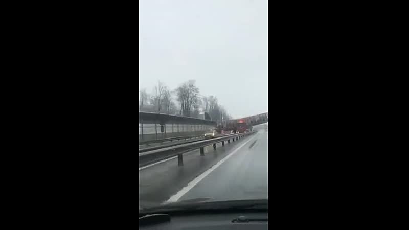 Les één van je vrachtwagenrijles (denken we): weet hoe hoog je lading is. Voordat je het weet hang je in Lakinsk (nabij Moskou) in een wandelbrug.