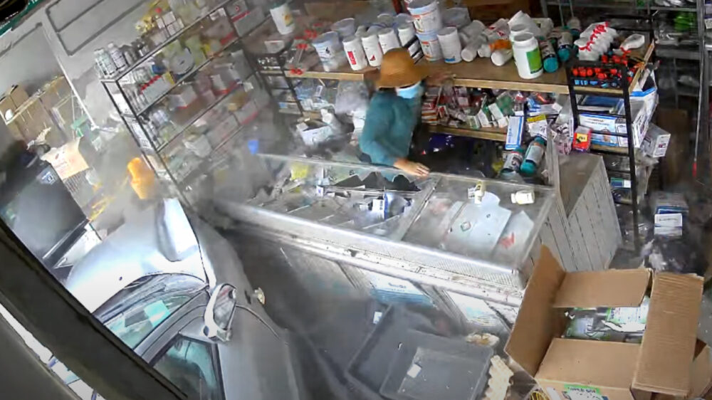 Deze dame zat in het Vietnamese Xuan Thanh even rustig haar dagopbrengsten te tellen toen ze ineens behoorlijk werd afgeleid door een knetterhard binnenknallende auto. De bestuurder was dronken, iedereen kwam er zonder ernstige verwondingen vanaf, maar ze kon wel weer hélemaal opnieuw beginnen met tellen.