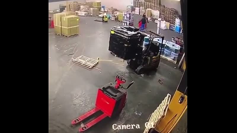 Magazijnmedewerker krijgt het aan de stok met een stugge pallet Fails