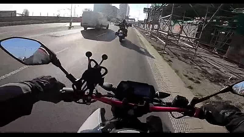 Idiote verkeershufters die hun machine niet onder controle hebben kom je helaas overal tegen, maar deze motorrijder kreeg er in Duitsland eentje in zijn nek. Liep zo te zien goed af, maar echt lekker is anders.