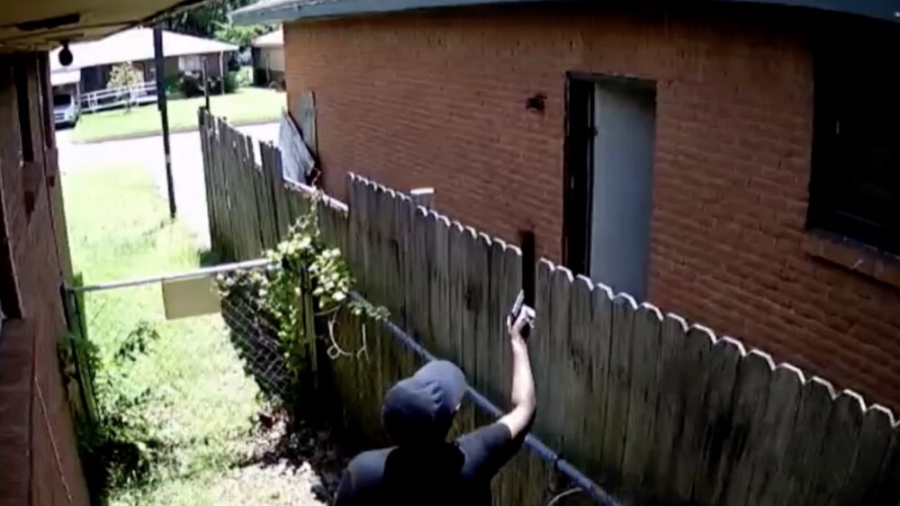 Geen idee wat de buurman heeft geflikt, maar zij is er zo te zien behoorlijk pissig over. Zelfs mr. Frank Visser kan hier niet bij helpen, want het zijn tenslotte haar eigen CCTV-beelden die we hier laten zien. Doh!