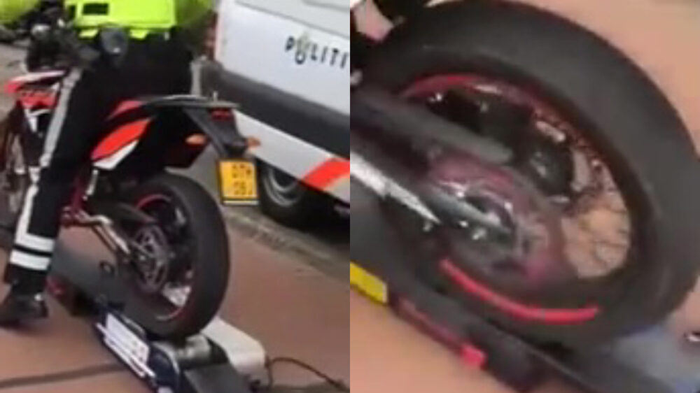 Heb jij weer. Kom je glansrijk door de rollenbank-test met je brommer, doet oom agent er nog even een schepje bovenop.