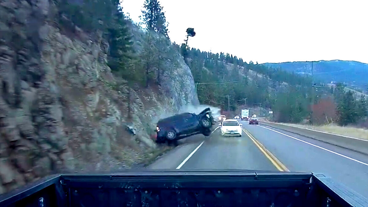 Waarom deze Canadese fugitive op de vlucht is voor de popo weten we (nog) niet, maar met zijn SUV loopt het niet lekker af. Hij kan het gelukkig nog wel navertellen terwijl hij in zijn celletje zit.
