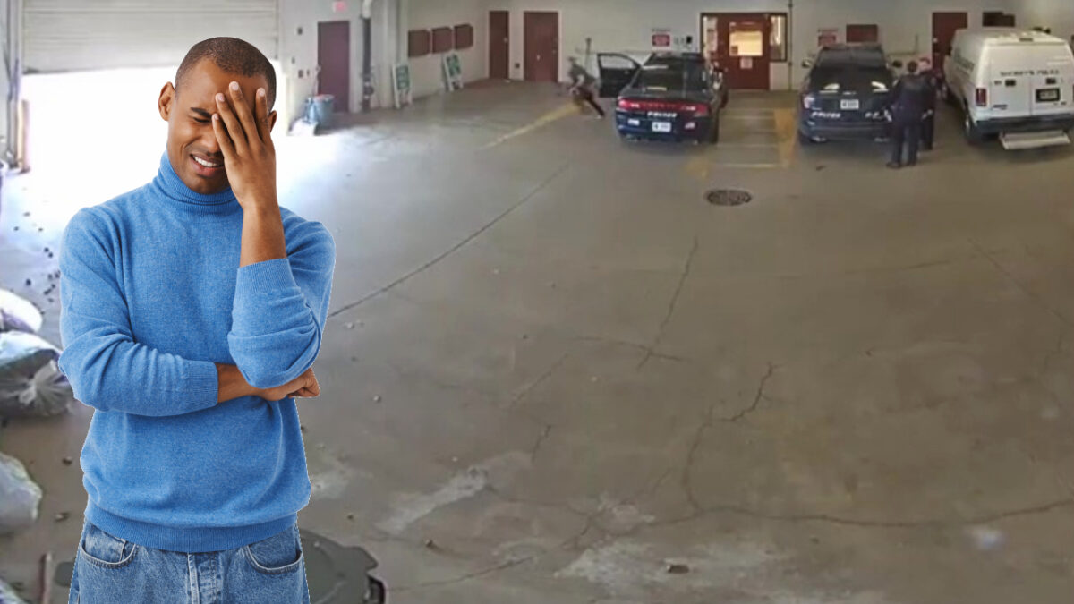 Als je een verdachte binnen moet brengen is het wel heel wijselijk om eventjes goed op te letten, in elk geval totdat de garagedeur goed gesloten is. Wat een prutser!