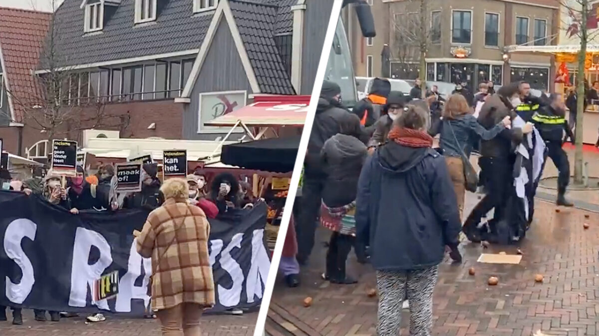 Kick Out Zwarte Piet niet welkom in Volendam: bekogeld met eieren en oliebollen